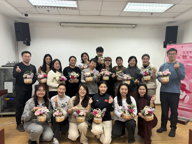 活动最后,全体参与人员以插花作品为背景,拍摄了“女性教职工全家福”,定格下这一温馨且充满意义的时刻。