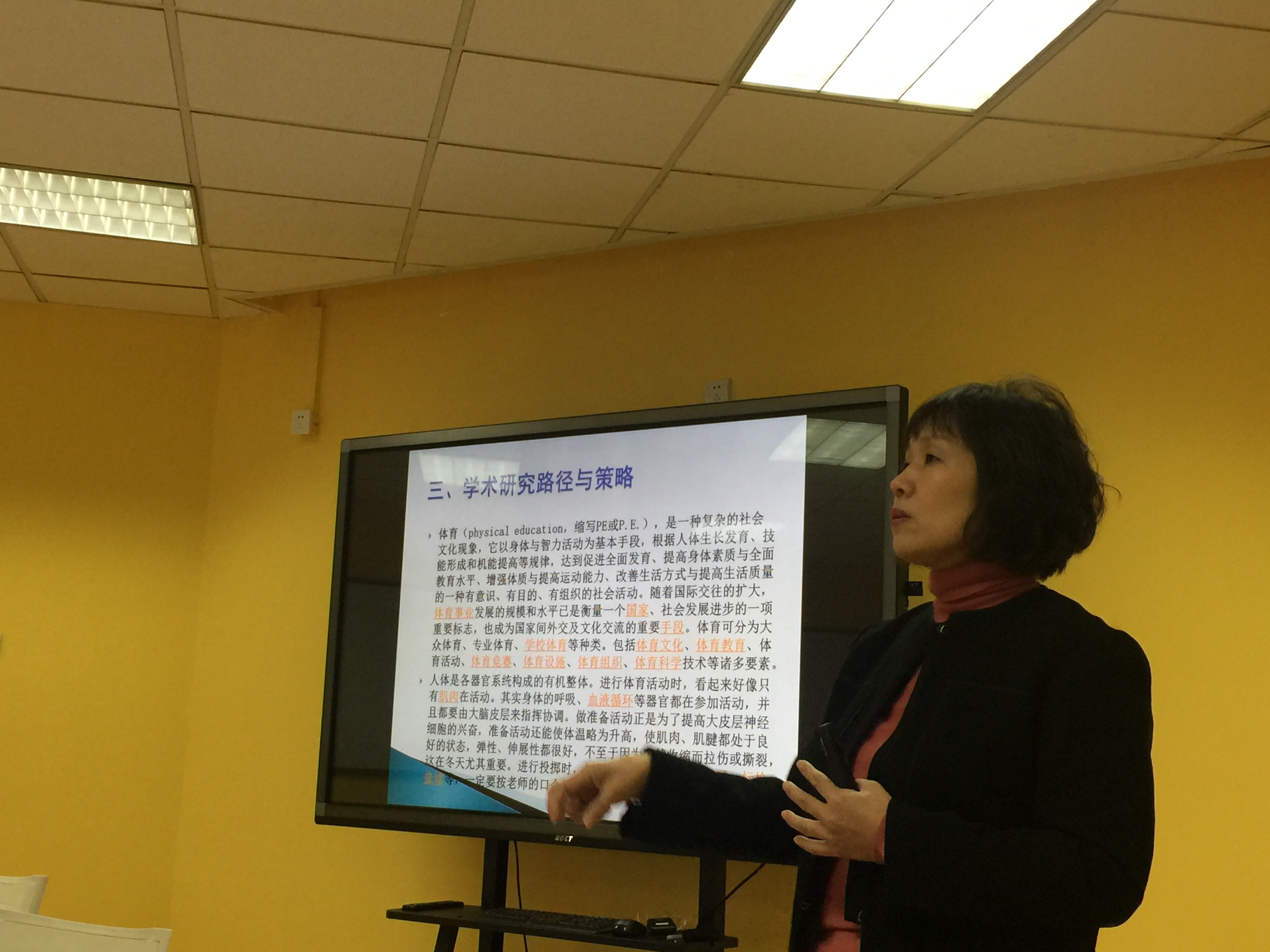 开课前,体育部党总支张凤都书记对本次培训的重要性进行了强调,他说,作为东北大学的青年教师,重视科研、学术,是学校建设一流大学目标的需要,是学科发展的需要,也是教师个人发展的需要。尽管体育学科有一定的特殊性,但其同样需要有科研、学术作为依托。今后将通过多种培训形式提高青年教师的专业技能及学术水平。 郁培丽教授从学术研究起步、学术研究工作的意义、学术研究路径与策略、知识创新与知识传授四个方面结合自身成长和学术经历与体育部青年教师进行了面对面传授与交流。