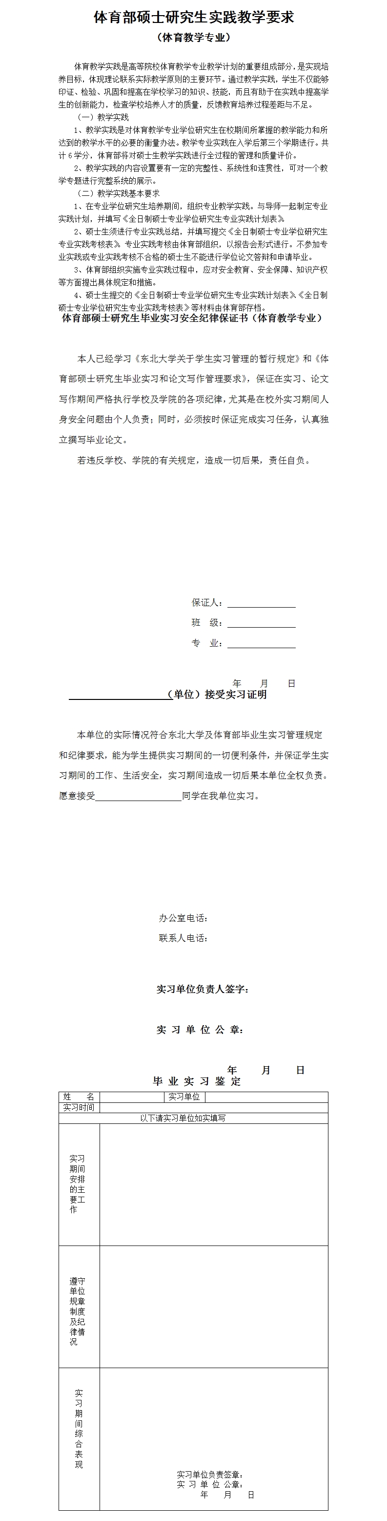体育部硕士研究生实践教学要求(体育教学专业)