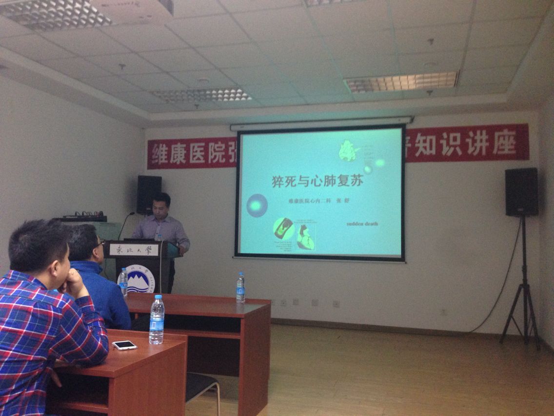 3月16日,在刘长春体育馆会议室,沈阳维康医院心内科主任张 舒为体育部全体人员、社会体育部分学生、体育场馆管理中心部分人员做了题为“猝死与心肺复苏”讲座。张舒就猝死的典型案例、猝死的原因及心脏复苏的步骤和方法及运动员和大学生普遍问题进行了详细的解读,受到在场人员的一致好评。会后,现场还进行了咨询和义诊。