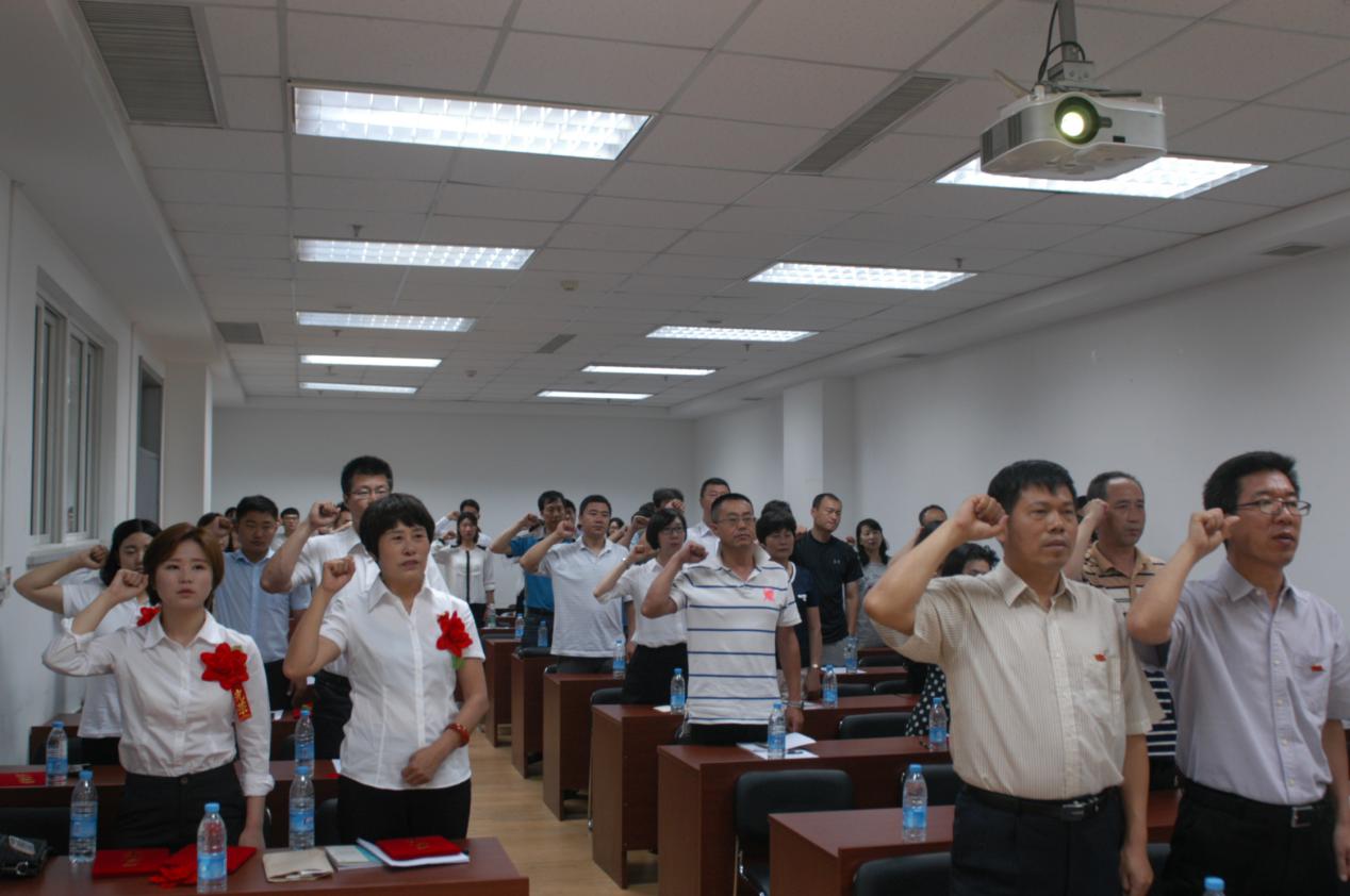 颁奖后,全体党员重温入党誓词,再次在党旗下庄严宣誓:“我志愿加入中国共产党……”,伴随着亲切的入党誓词,重温着最初入党时的责任感、使命感。