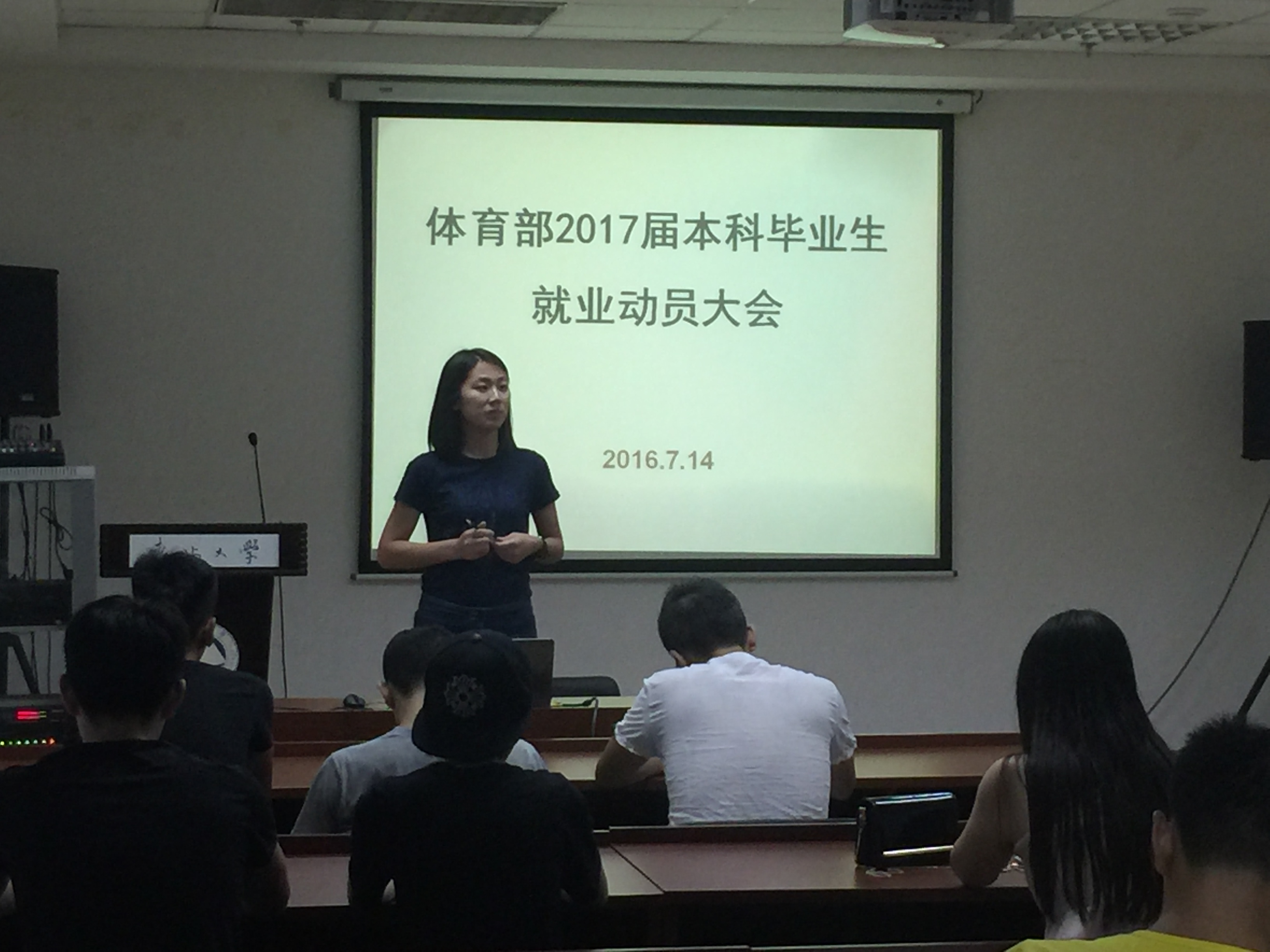 7月14日下午14:00,体育部2017届本科毕业生就业动员大会在刘长春体育馆会议室召开,辅导员顾杰老师、体育部2017届全体本科毕业生参加大会。