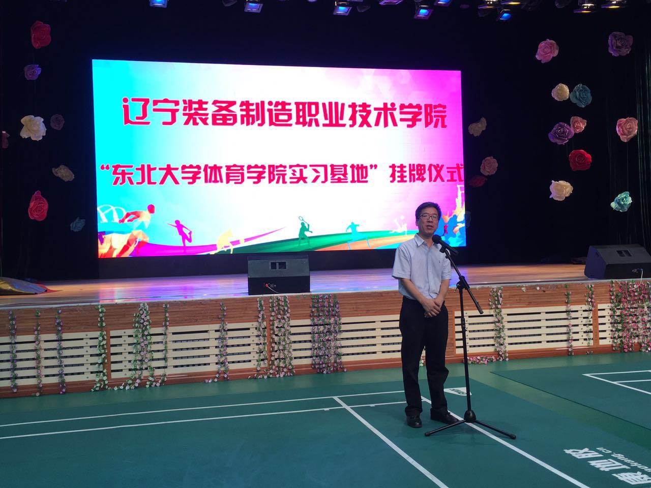 挂牌仪式由辽宁装备制造职业技术学院体育教研室主任姜君主持,在挂牌仪式上体育部党总支张凤都书记表示:这次合作意义深远,将为两个单位的发展带来新的契机,希望以后双方能够在更多方面开展合作。他还对即将在辽宁装备制造职业技术学院“东北大学体育部实习基地”开始实习的同学们提出了要求。