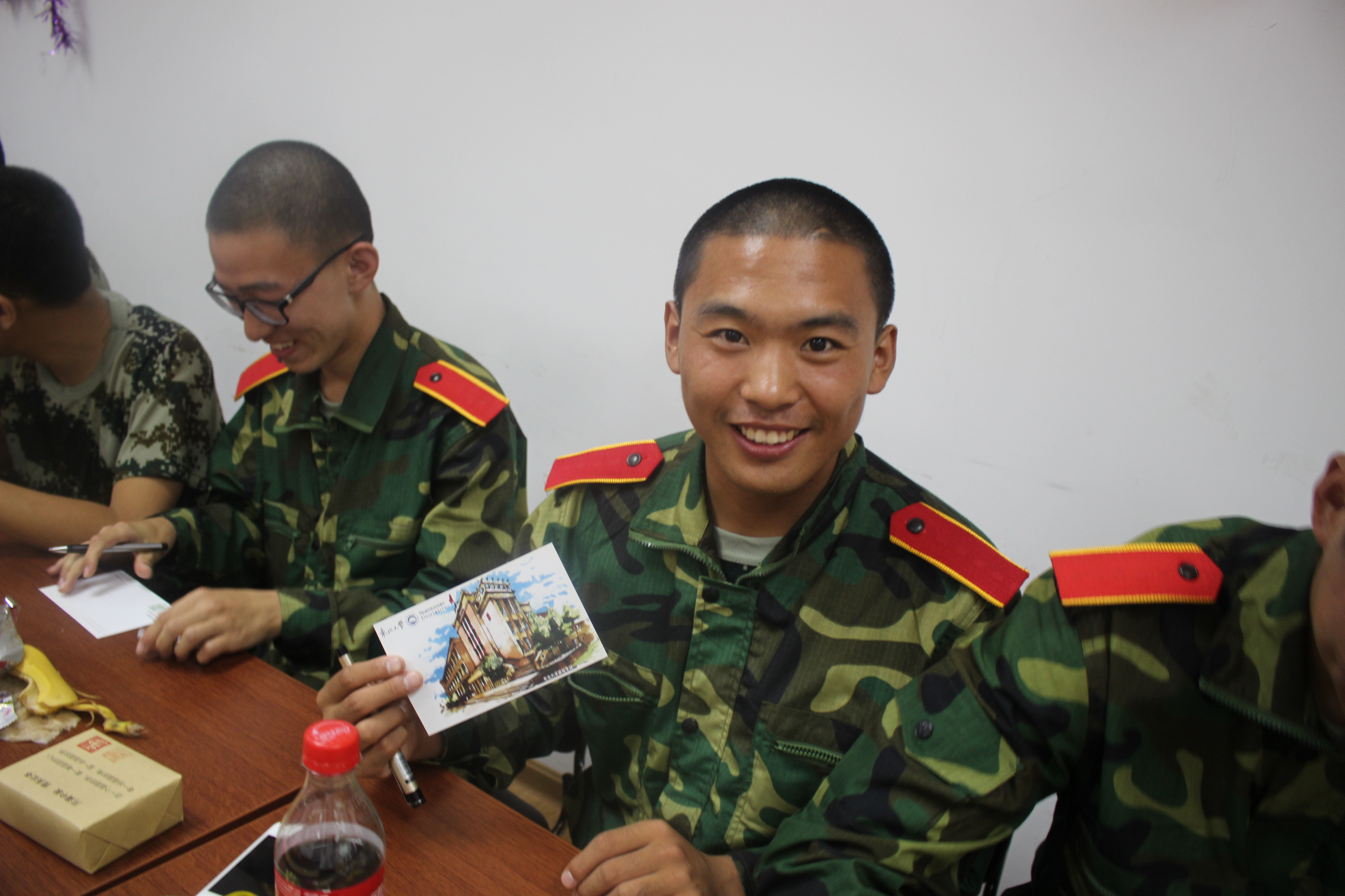 每一个铁骨铮铮的男儿,心里都有一处柔软;每一位侠骨柔情的巾帼,心中也会有一份牵挂,那就是家。我们准备了一张可以承载我们思念的明信片,同学们尽情地书写了对家人的思念与祝福,并由学长为他们寄出。