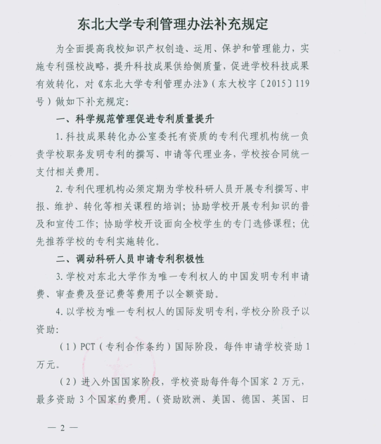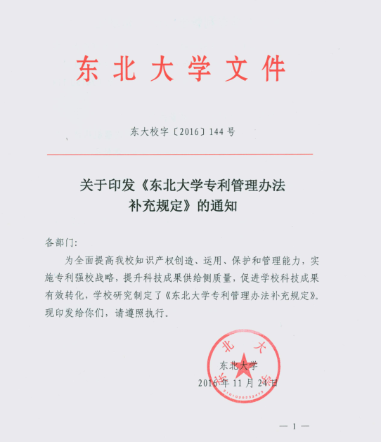 关于印发《东北大学专利管理办法补充规定》的通知.pdf
