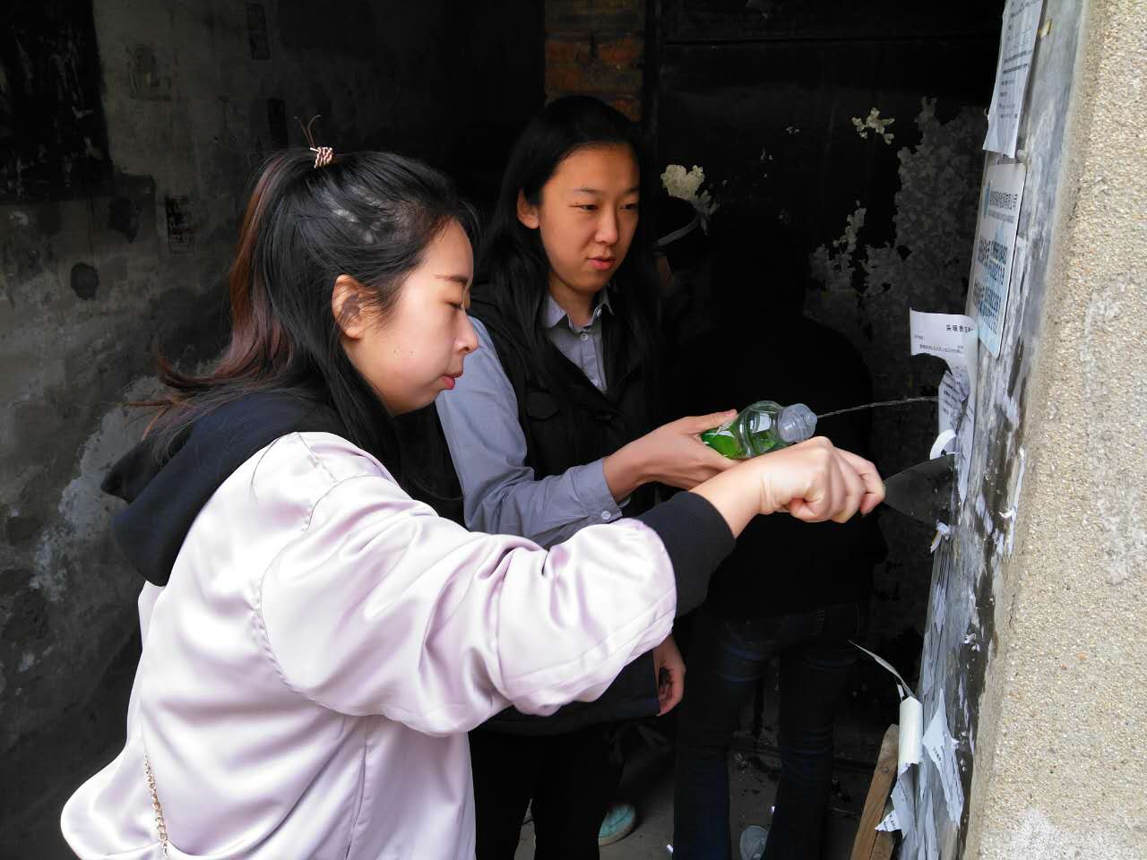 在我们周围社区内,有着大小不一、样式各异的宛如“牛皮鲜 ”一样的小广告贴在家属楼的墙上,严重影响了市容市貌。为了改进居民的生活环境,还他们一个美丽的社区,体育部学生党支部早早来到了望湖北路7巷3-1、3-1、3-3三座楼进行小广告的清除工作。经过迅速分工,学生党员熟练的拿起工具开始了清除小广告的行动。在大家的共同努力下,清除工作得以高效高质的完成。
