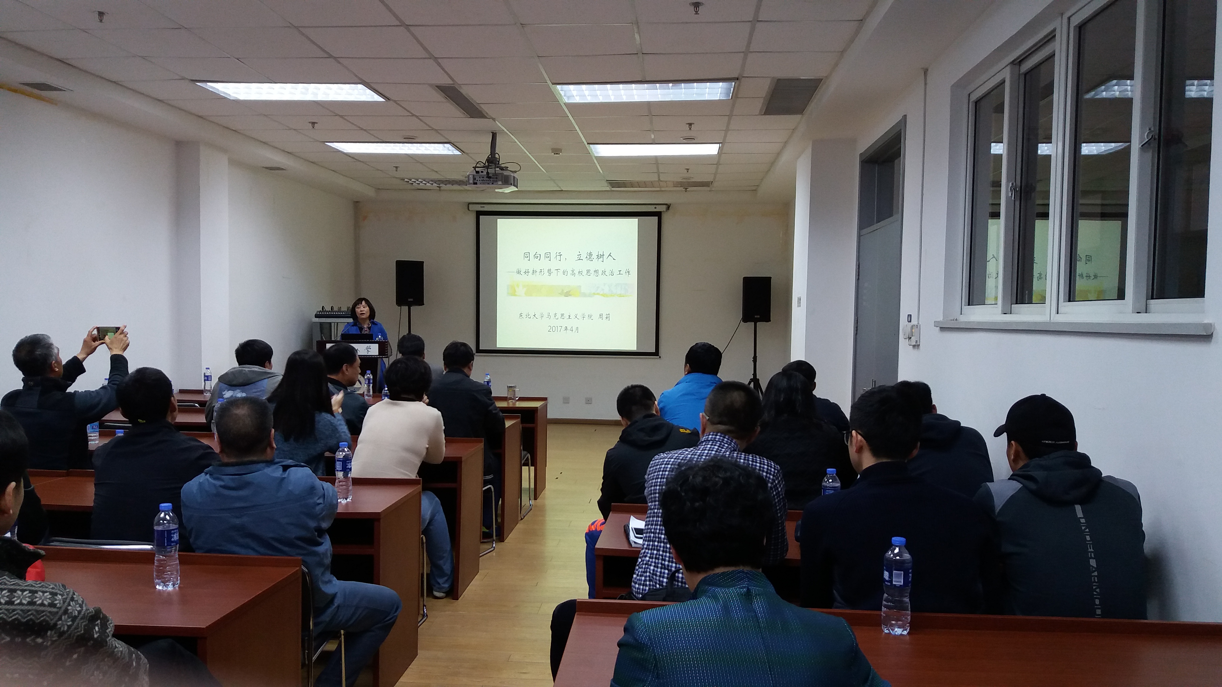 本次会议邀请东北大学马克思主义学院副院长周莉作了题为“同心同行,立德树人”的专题讲座。 周莉副教授通过对加强大学生思想教育对高校党委、基层党组织、高校教师和学生党员的要求进行解读,阐明各单位切身肩负的责任,创新机制,改进工作方式,提高基层党组织思想政治工作能力,提出教师应从每一件小事中言传身教,潜移默化地向学生传递社会主义的现在和未来发展趋势。