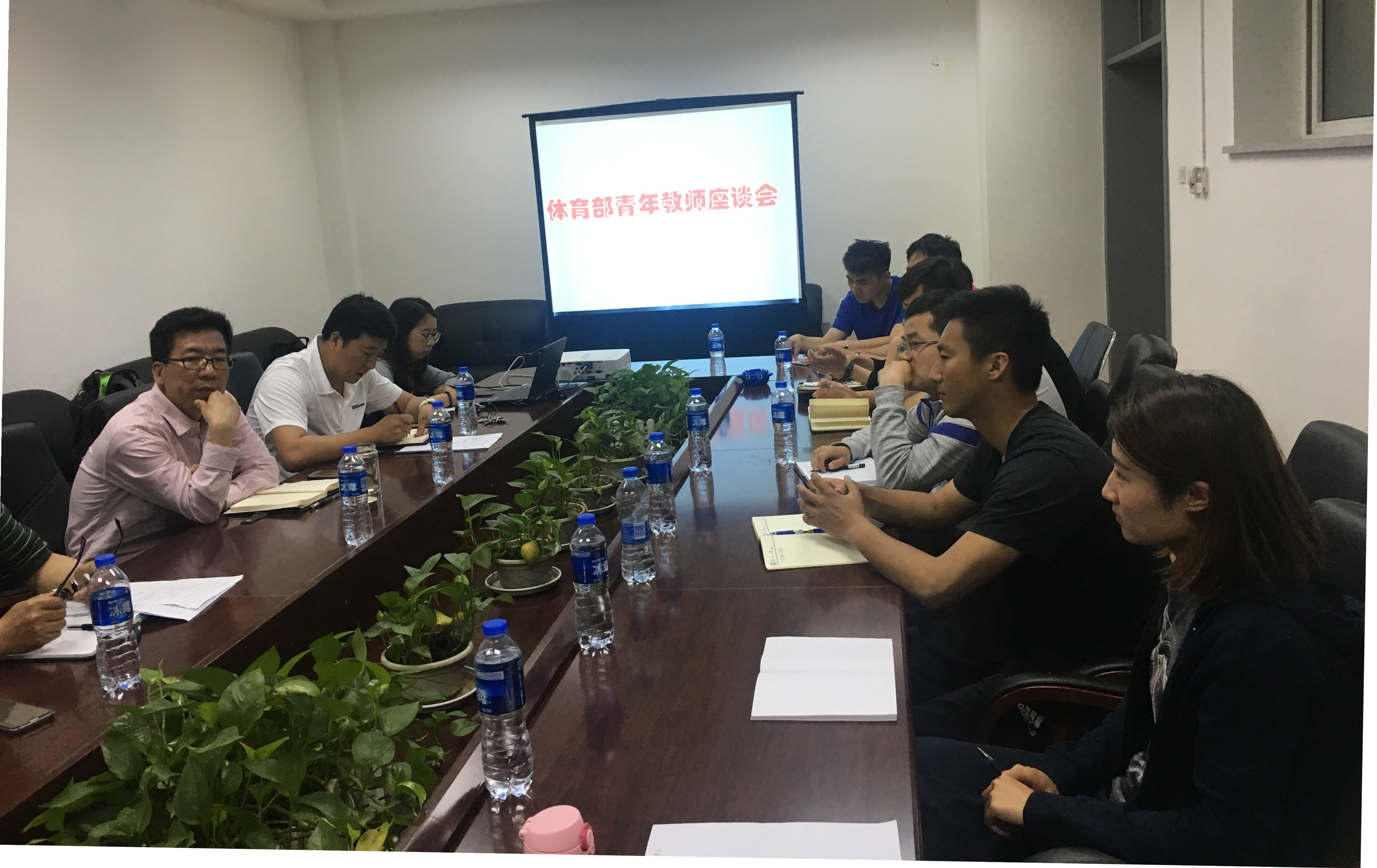 2017年5月24日,体育部在刘长春体育馆南108会议室召开青年教师座谈会。体育部党总支书记张凤都,副书记诸善顺,副主任孙玉宁,工会主席王景利及全体青年教师参加会议。