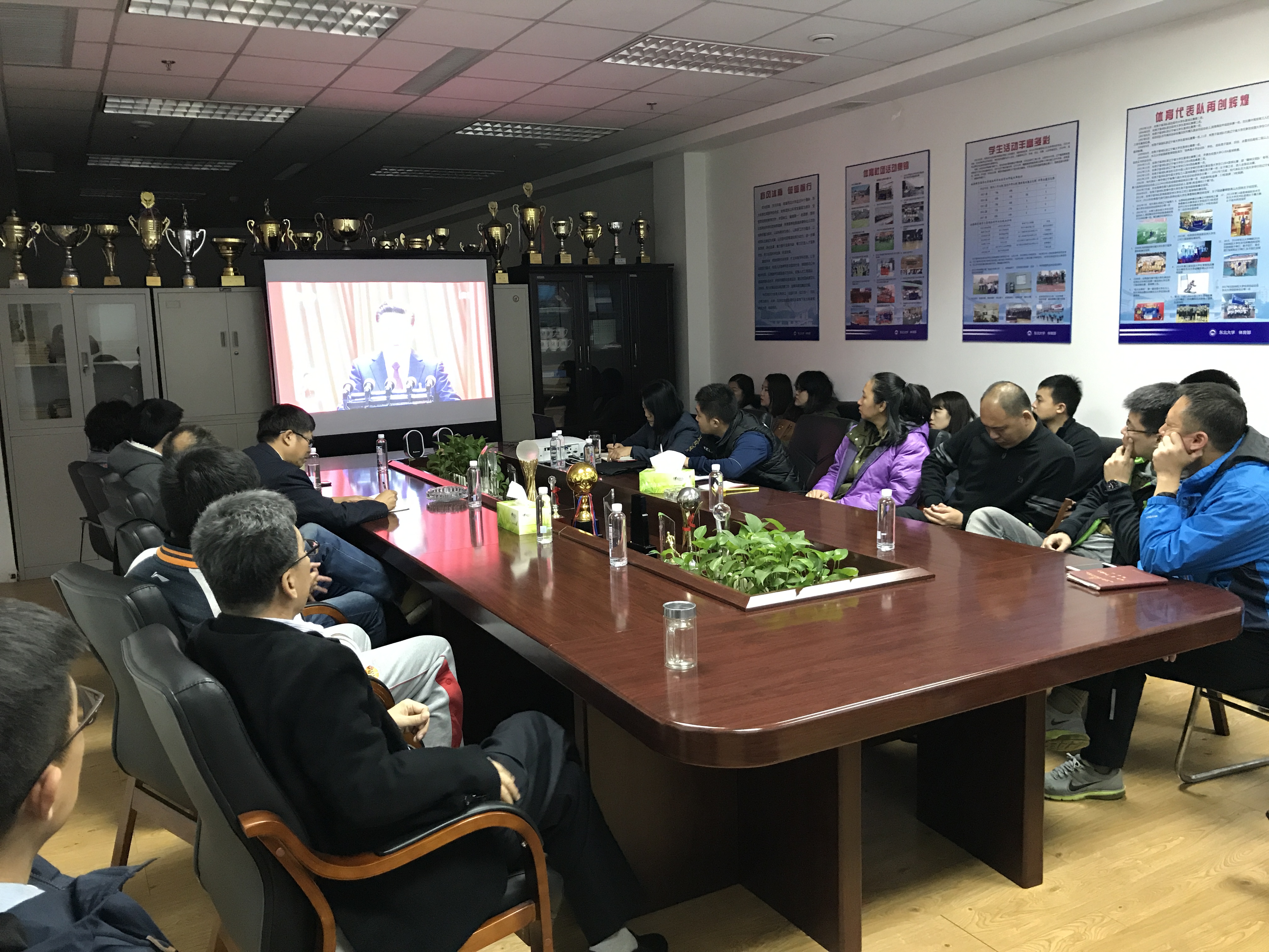 10月18日上午,中国共产党第十九次全国代表大会在北京隆重开幕。上午9时,体育部师生党员及积极分子齐聚刘长春体育馆南109会议室,共同收看开幕会盛况。