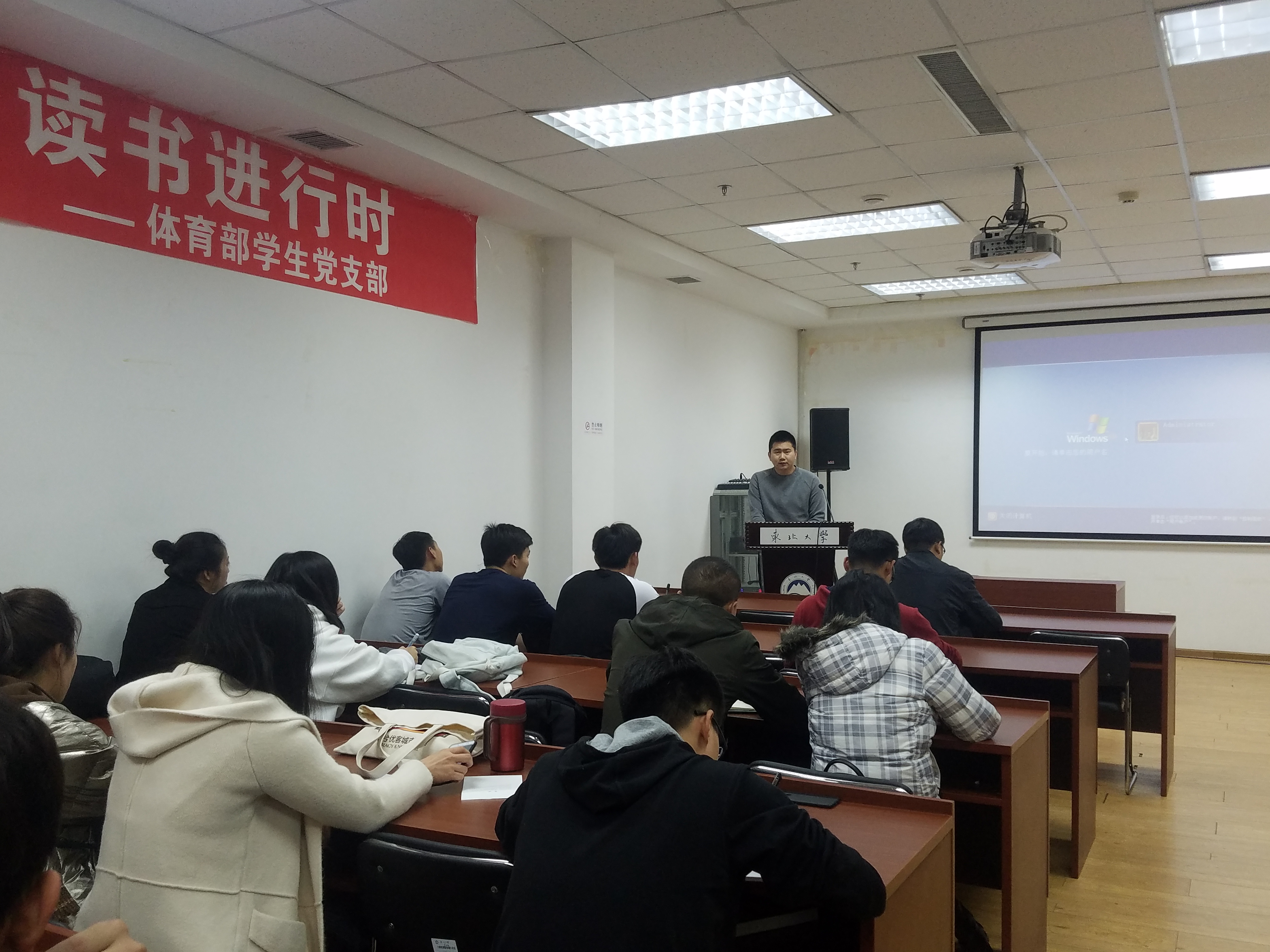 为进一步领悟党的十九大精神,切实把党支部的思想工作统一到党中央的决策部署上来,体育部学生党支部于11月8日在刘长春体育馆多媒体会议室,开展“领悟十九大,读书进行时”主题党日活动。体育部党总支副书记诸善顺、组织员贾新溪、体育部学生党支部成员和积极分子参加本次活动。会议由体育部学生党支部书记孙嘉铭主持。