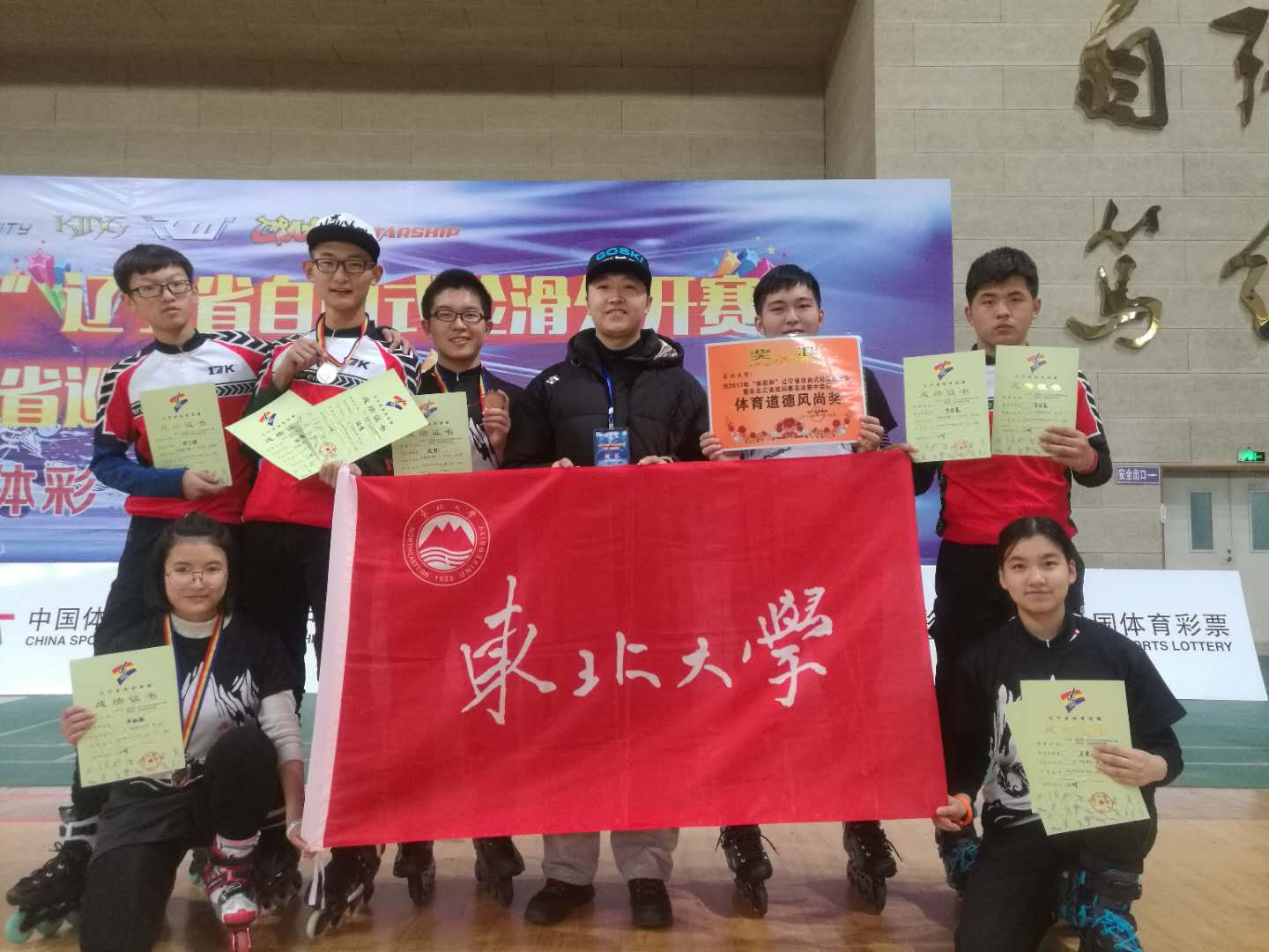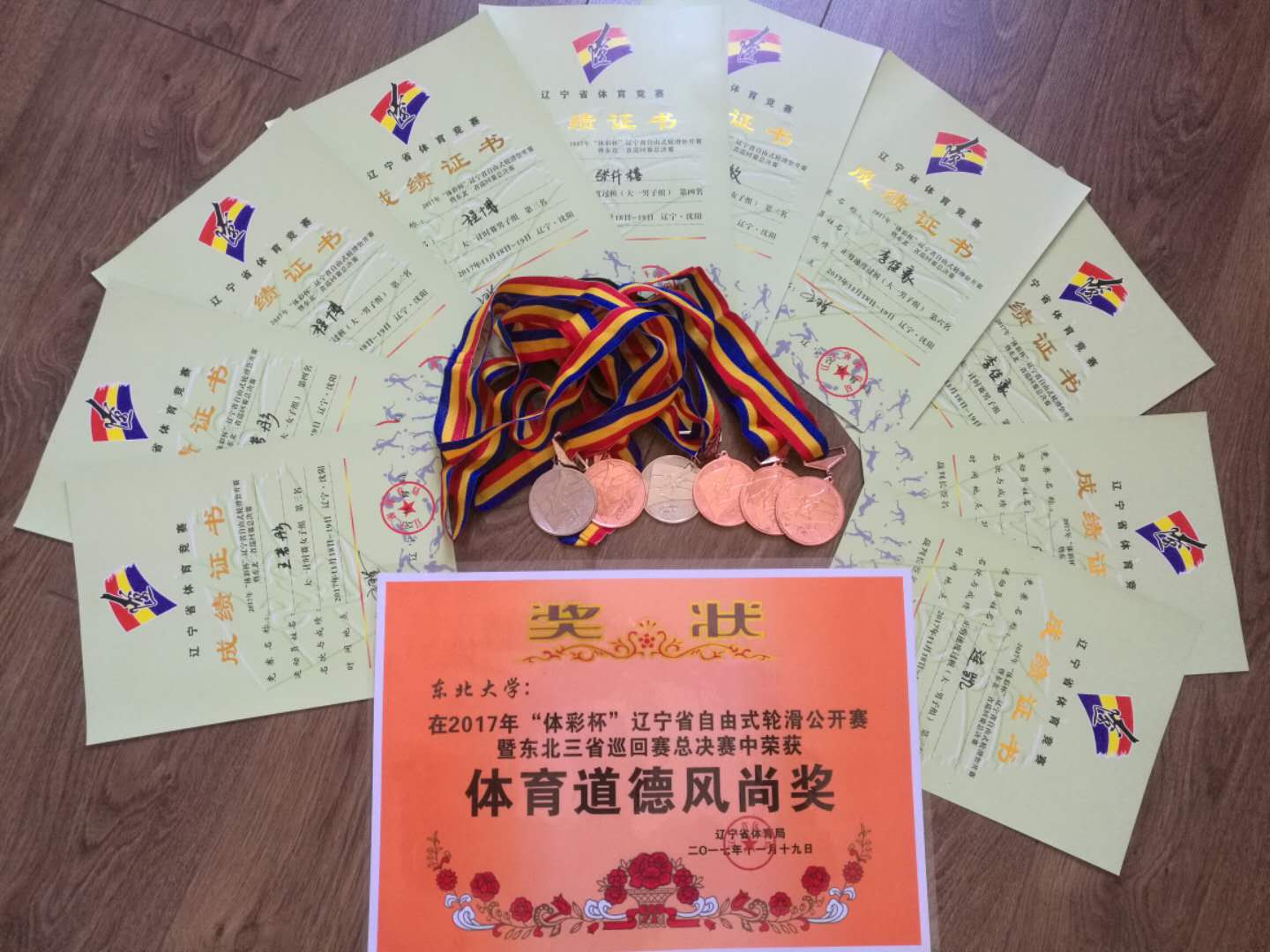 11月18日至19日,2017年辽宁省自由式轮滑公开赛暨东北三省巡回赛总决赛在沈阳工业大学中央校区体育馆举行,由体育部主任陈松领队、体育部教师逯明智、厉中山担任教练的东北大学轮滑队获得高校组团体总分第一名和体育道德风尚奖。