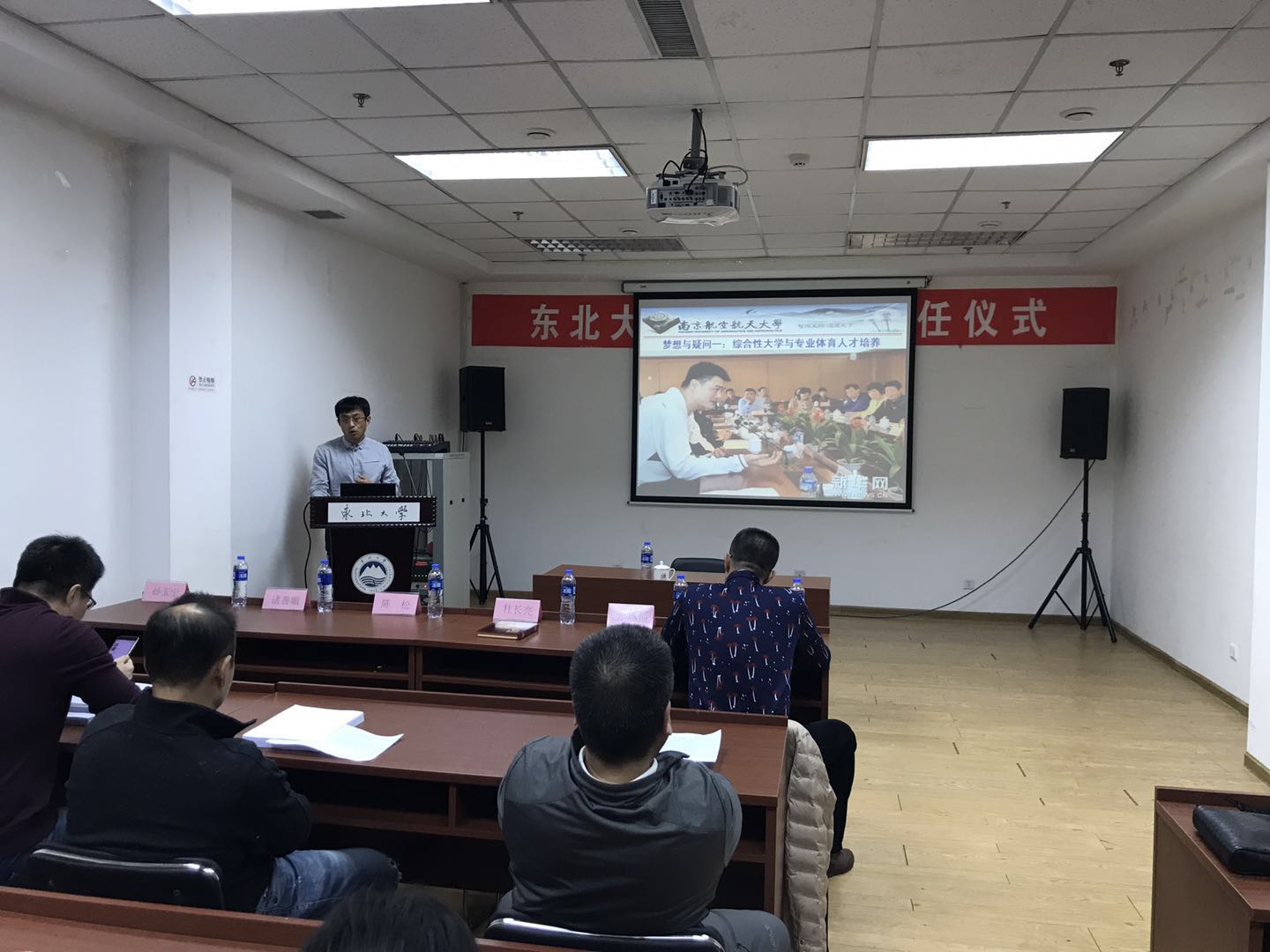 为促进体育学科建设,壮大体育部学术团队,提升体育部人才培养质量,东北大学聘任南京航空航天大学体育部副主任杜长亮教授为兼职教授,参与体育部学科建设以及学位授权点建设工作。12月21日下午,聘任仪式在刘长春体育馆会议室举行,党总支书记张凤都主持聘任仪式,体育部主任陈松为杜长亮教授颁发聘书。仪式结束后,杜长亮教授为体育部师生作了题为《美国大学体育学科发展启示》的学术报告。