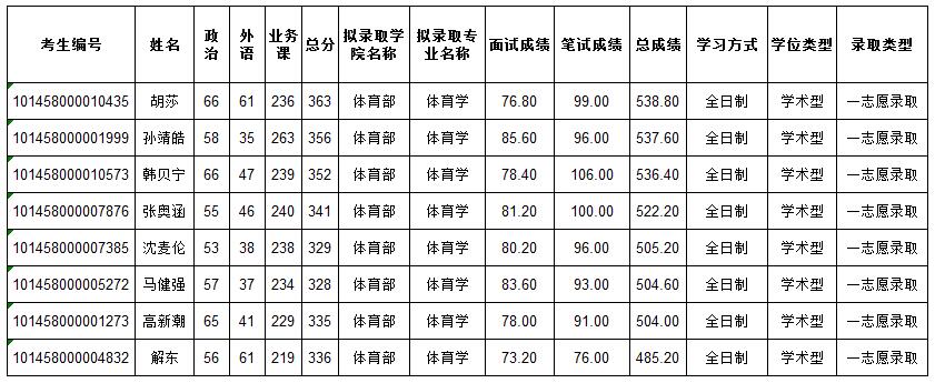 附: 体育部2018年硕士研究生招生考试拟录取名单