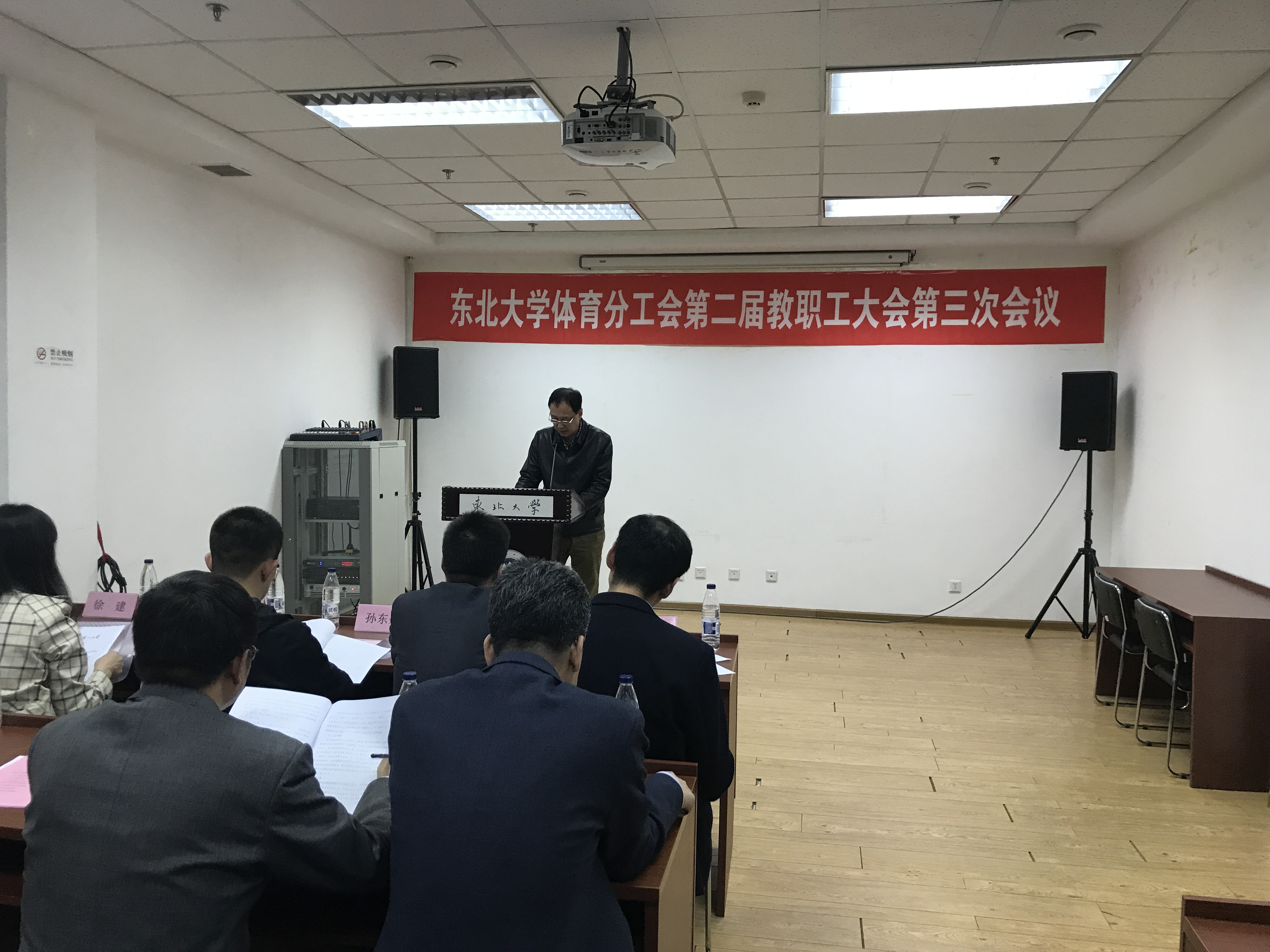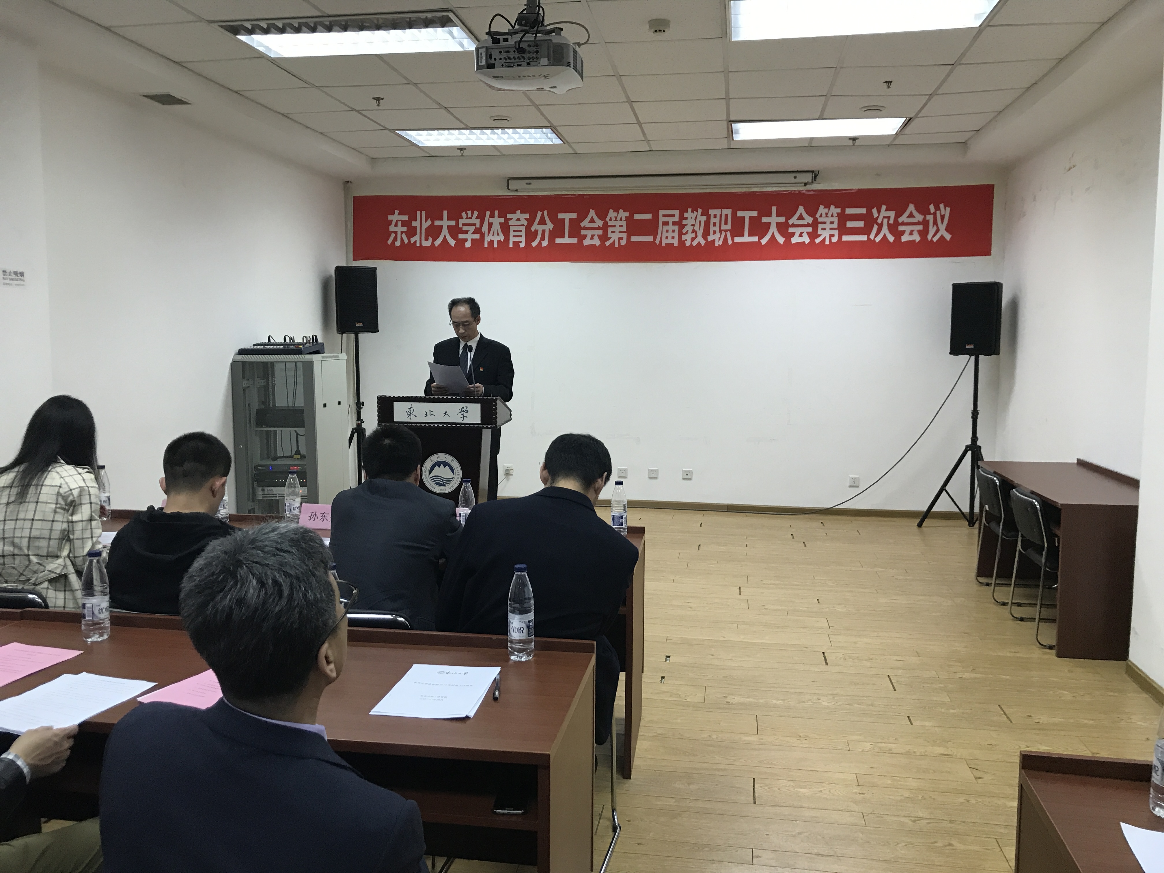会议在庄严的国歌声中开启。会上,体育部主任陈松作《体育部2017年行政工作报告》、《体育部2017年财务工作报告》;体育分工会主席王景利作《体育分工会2017年工作报告》;分工会副主席吴迪作《教代会提案工作报告》;会议以举手表决的方式审议通过了《东北大学体育部教职工绩效津贴实施细则》、《东北大学体育部教职工年度考核管理办法》(修订稿)。