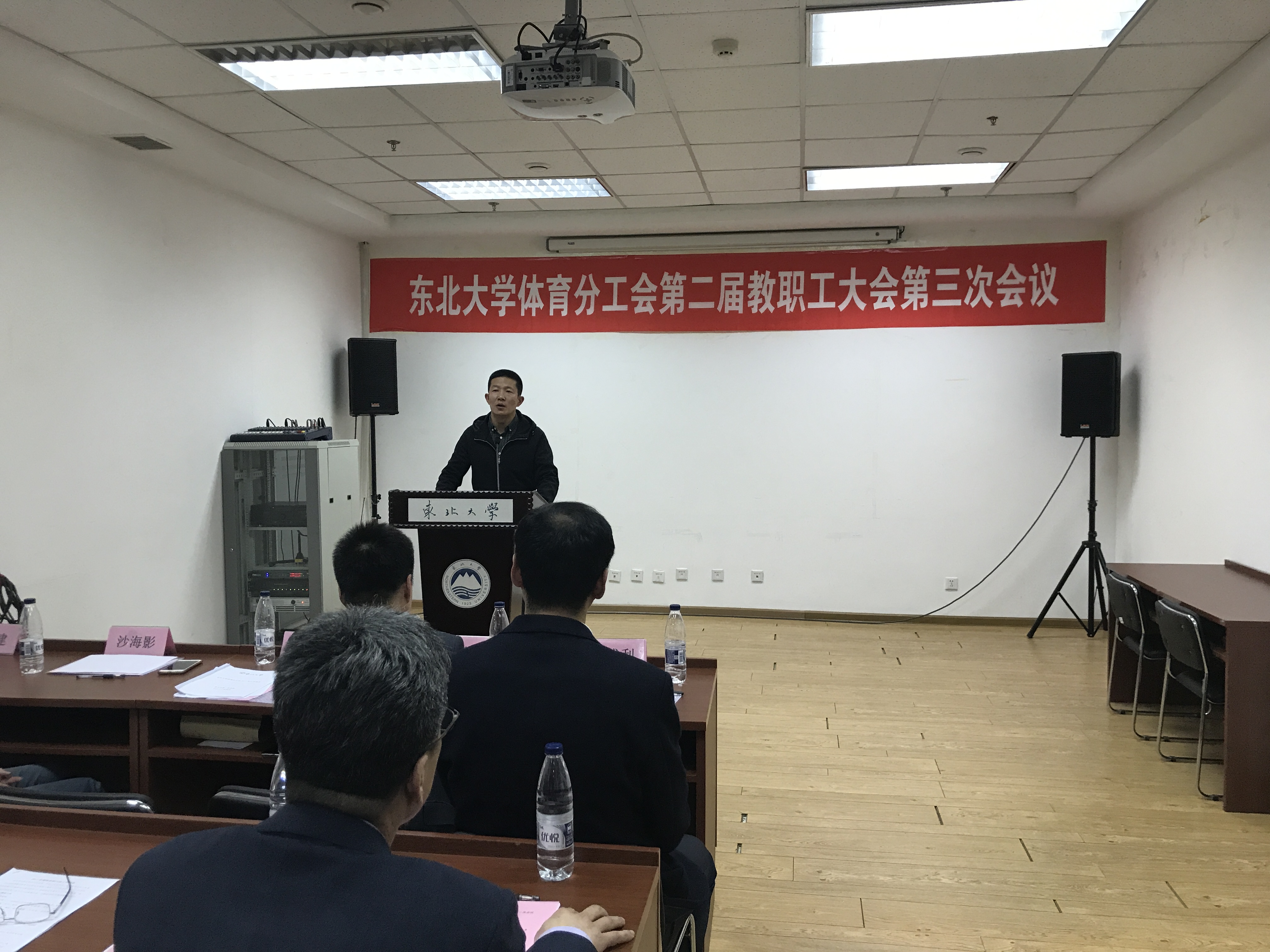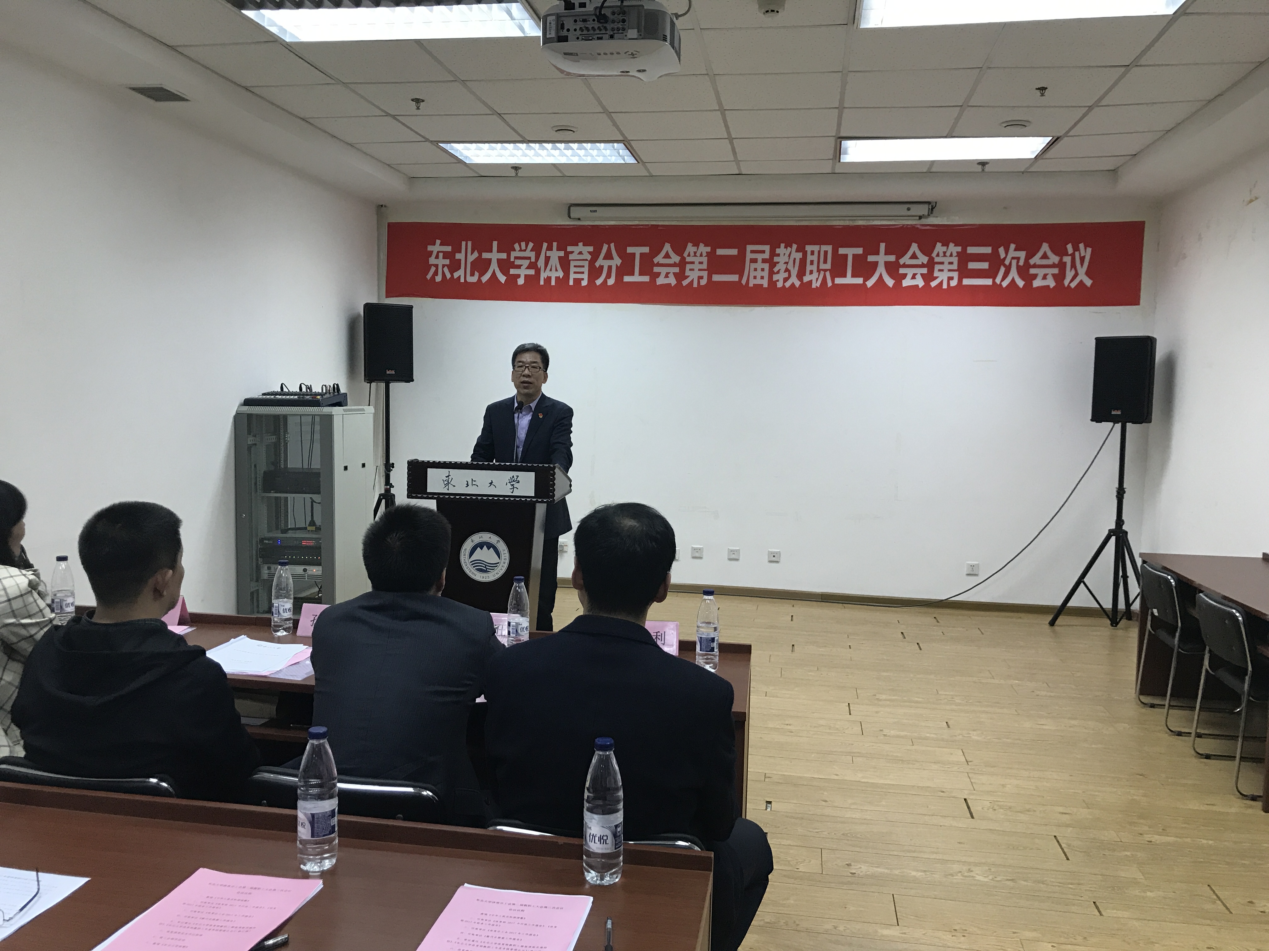 会议在庄严的国歌声中开启。会上,体育部主任陈松作《体育部2017年行政工作报告》、《体育部2017年财务工作报告》;体育分工会主席王景利作《体育分工会2017年工作报告》;分工会副主席吴迪作《教代会提案工作报告》;会议以举手表决的方式审议通过了《东北大学体育部教职工绩效津贴实施细则》、《东北大学体育部教职工年度考核管理办法》(修订稿)。