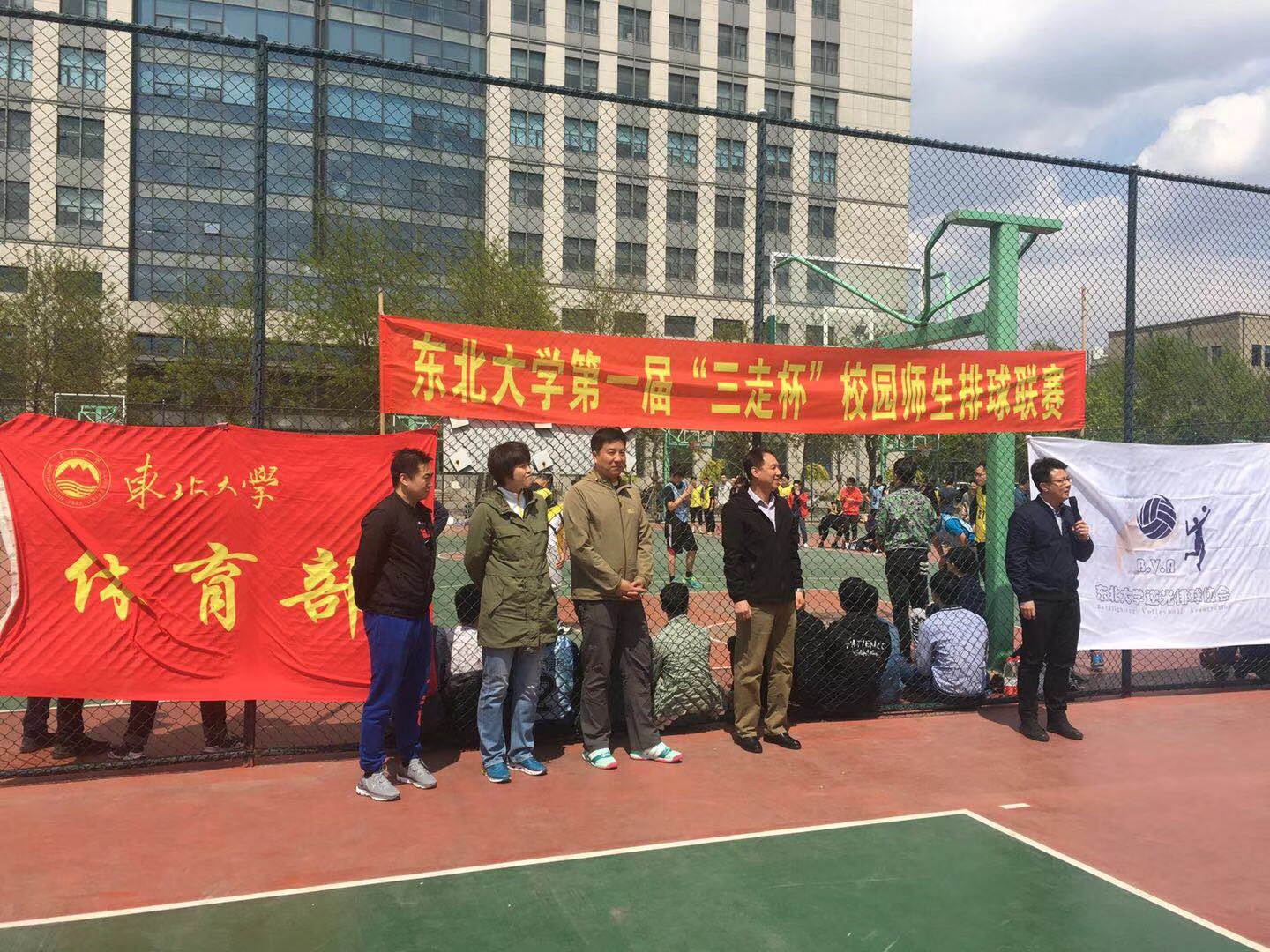 5月3日,东北大学第一届“三走杯”校园师生排球赛正式开赛。体育部主任陈松、校团委副书记黄达、体育部副主任孙玉宁出席开幕式。