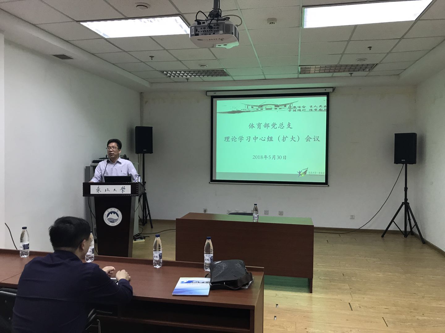 为深入学习贯彻习近平新时代中国特色社会主义思想,引导广大师生树立积极、高尚的家国情怀,5月30日下午,体育部党总支在刘长春体育馆会议室召开理论学习中心组(扩大)会议,体育部全体教职工、体育场馆管理中心教职工党员、学生党员及积极分子参加会议,会议由体育部党总支书记张凤都主持。