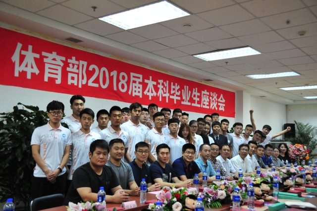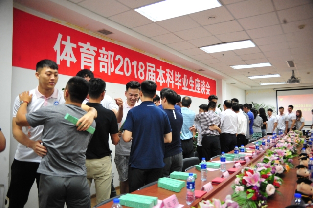 6月28日下午,体育部2018届本科毕业生座谈会在刘长春体育馆会议室召开,体育部领导班子、各教研中心主任、教师代表及全体2018届本科毕业生参加座谈会,座谈会由党总支副书记兼副主任诸善顺主持。