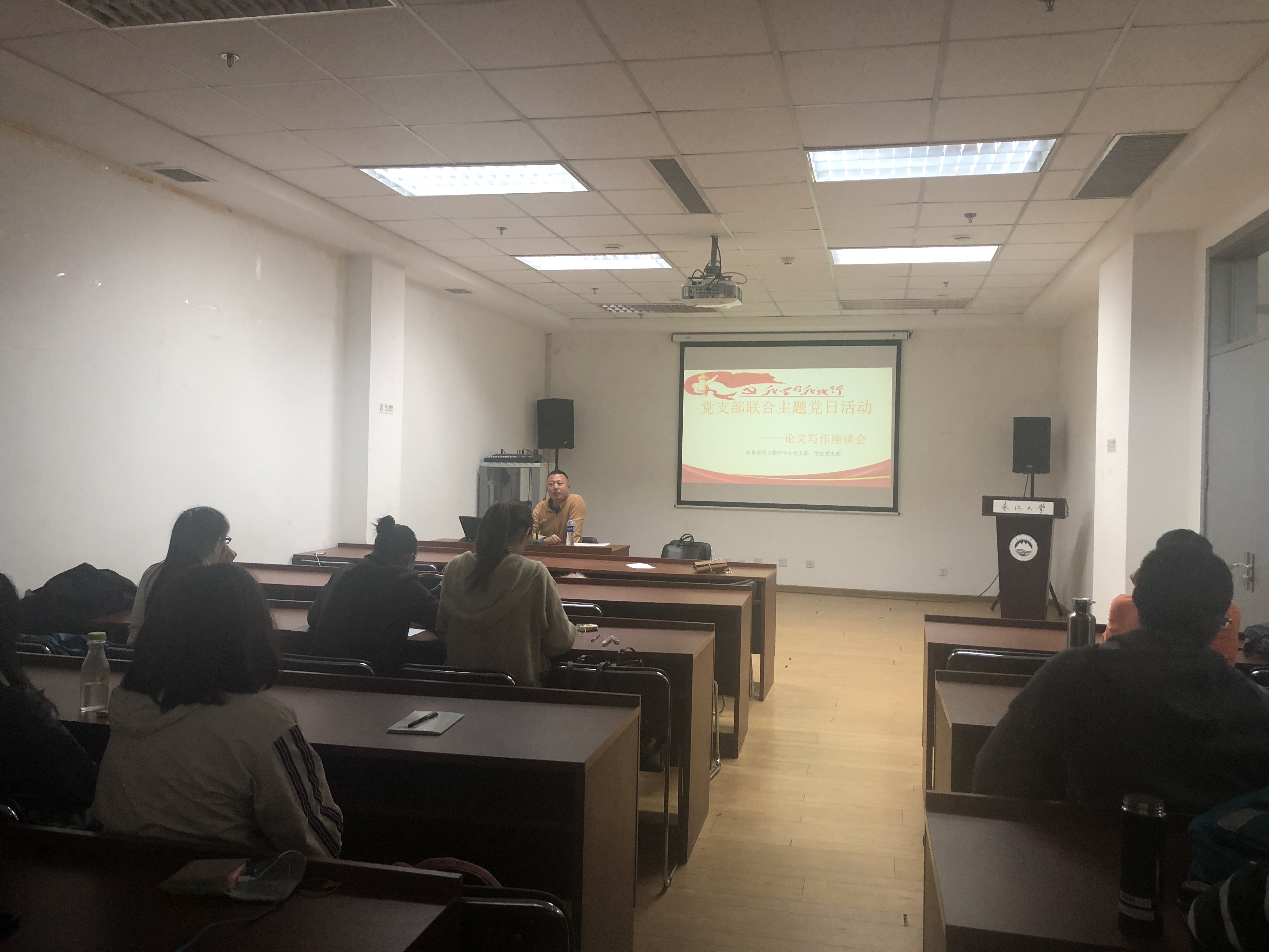 此次活动由体育部综合教研中心党支部书记解欣作“开启体育人文社会研究之路—学术论文写作与投稿”专题报告,解欣结合实际案例分析了学术论文写作的方式方法,针对论文选题、写作格式等方面问题分享了自身经验,并就体育类中文核心期刊的审稿流程、投稿方法及注意事项作了介绍。解欣鼓励同学们扩展写作思路,开拓研究角度,增强学术研究能力,为学术科研工作打下坚实基础。