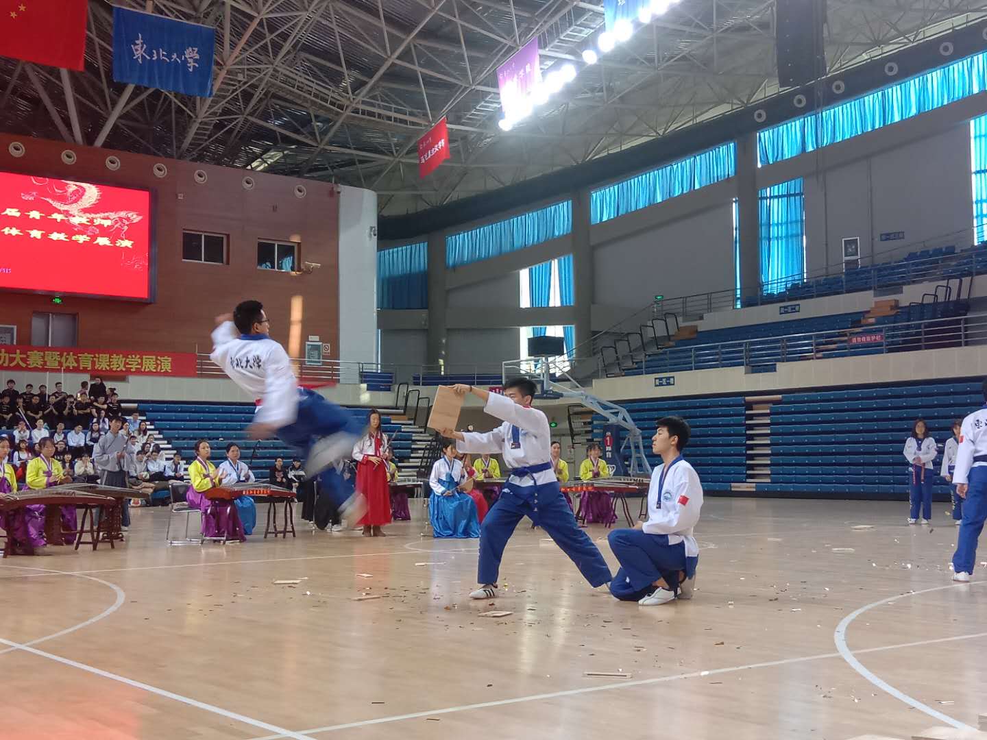 12月19日下午,东北大学第三届“青年教师基本功大赛颁奖仪式暨体育教学展演”在南湖校区刘长春体育馆精彩呈现。近年来我校体育课教学是以增进学生健康,培养学生终身体育意识和能力为主要目标的必修课程,具有鲜明的基础性、实践性、健身性和综合性,是实施素质教育和培养德智体美全面发展人才不可缺少的重要途径。为进一步调动大学生参与体育运动的积极性,提高大学生体质健康水平,推进全民健身运动发展,体育部积极开展公共体育教学成果展演。
