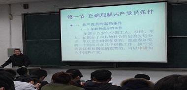 根据东北大学校党委关于体育部业余党校的工作安排,体育部申请入党的部分同学(含本科生和研究生,共计25人)于2015年11月20日晚6:30在东北大学资土学院采矿馆101教室参加资土学院业余党校培训。本期党课培训将分为“中国共产党的性质”、“党的指导思想”、“共产党员的条件”、“党的最终目标和现阶段任务”和“做一名合格的共产党员”五讲进行。此次党课培训意在明确党的有关纪律和要求,提高入党积极分子的基本修养,为党组织选拔优秀党员打下坚实基础。