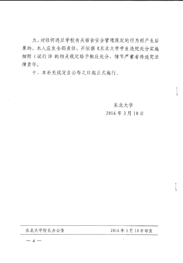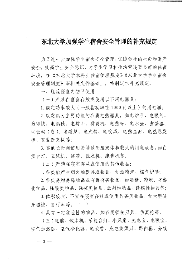 东北大学加强学生宿舍安全管理的补充规定