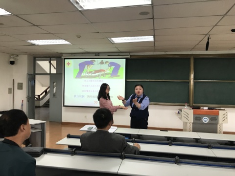 授课专家主要介绍了常见的运动损伤情况、预防措施和处理办法等,并与现场老师进行了互动交流。通过播放PPT和视频的方式介绍了面对紧急情况时进行心肺复苏的步骤,即判断意识、呼救帮助、判断心跳呼吸、胸外按压、开放气道、人工呼吸、持续心肺复苏、观察心肺复苏有效指征,同时强调了心肺复苏的注意事项,演示了心肺复苏的手法及动作要领。培训和交流活动让现场教师受益匪浅。