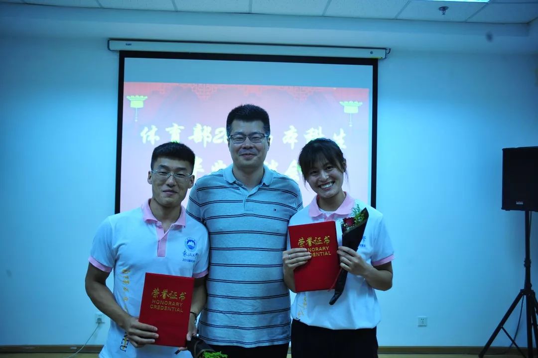 座谈会首先通过视频的方式回顾了2019届毕业生在体育部四年大学生活的点点滴滴。体育部主任陈松教授为毕业生颁发毕业证书和学位证书并合影留念。副主任陈家鸣教授宣布关于表彰体育部2019届本科毕业生张子越等七名同学的决定,并由教师代表分别颁发荣誉证书。
