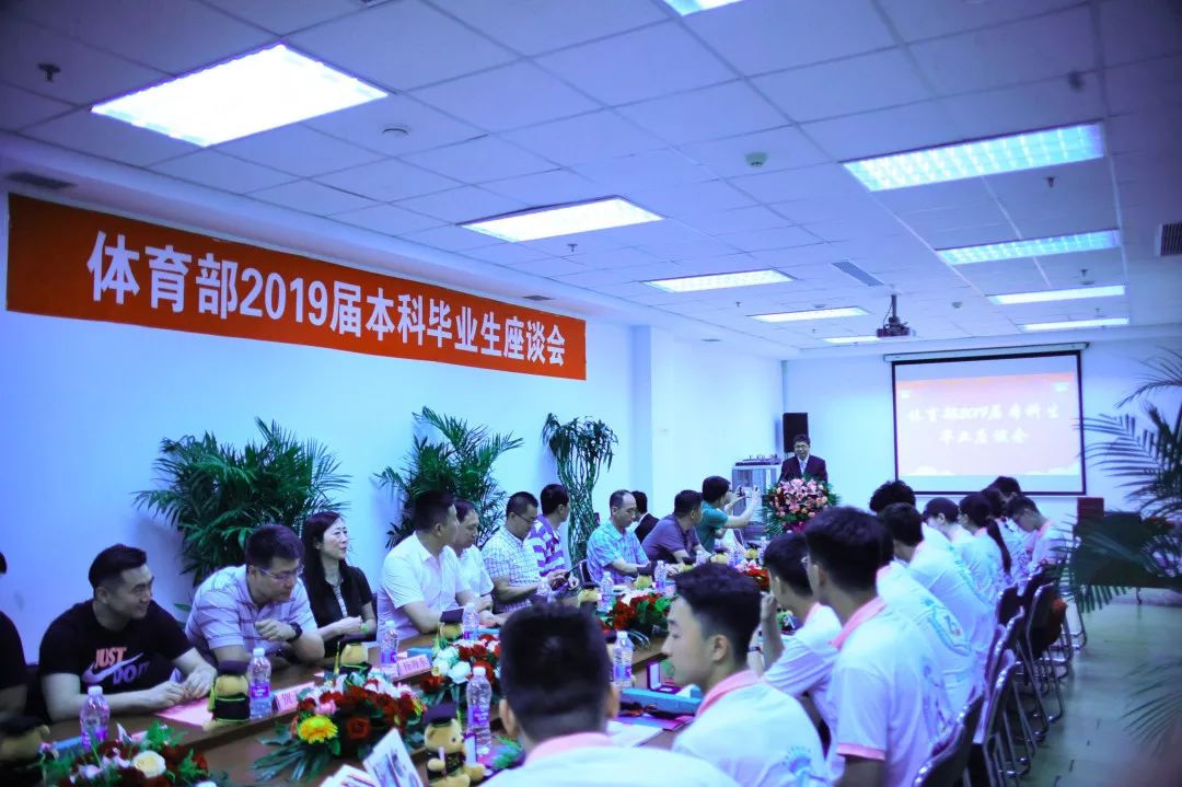 6月28日下午,体育部2019届本科毕业生座谈会在刘长春体育馆会议室召开,体育部领导班子、各教研中心主任、教师代表及2019届本科毕业生参加座谈会,座谈会由体育部副主任兼党总支副书记诸善顺主持。