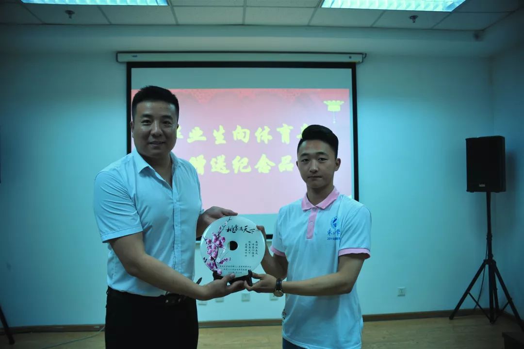 随后,2019届毕业生代表向体育部赠送纪念品,副主任孙玉宁副教授代表体育部接收礼物。