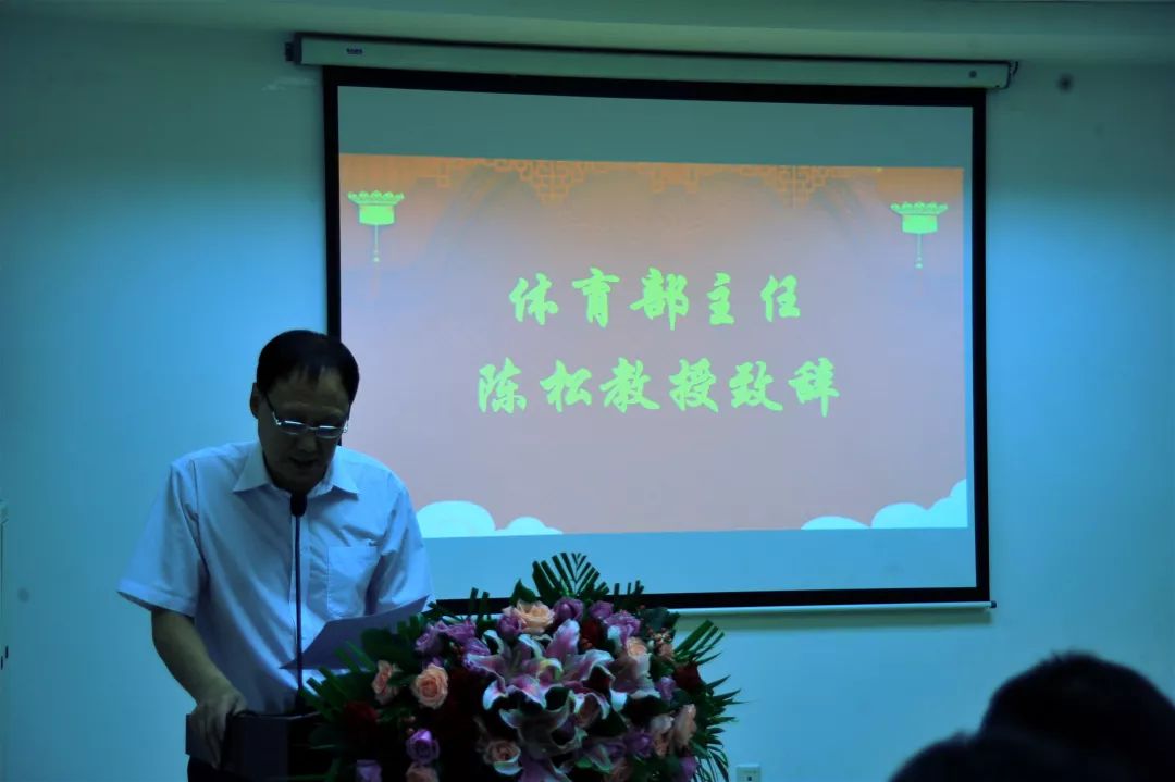 体育部主任陈松教授致辞:此刻即便对你们依依不舍,但也充满着殷切的祝福,经历了大学四年的磨炼和成长,祝你们在新的岁月里,直挂云帆,乘风破浪,前程似锦,秉持“自强不息,知行合一”的校训精神,期待着你们为祖国建功,为人民立业,为社会造福,为母校争辉。