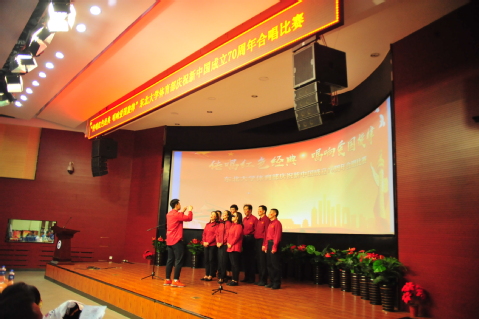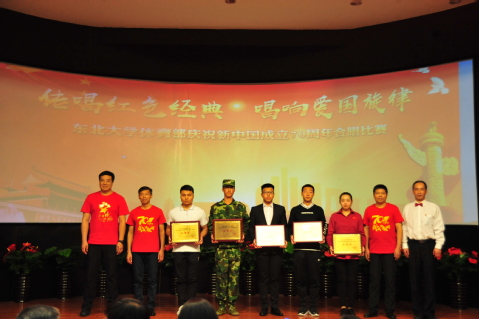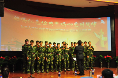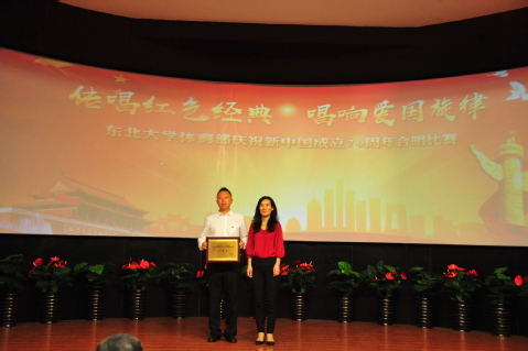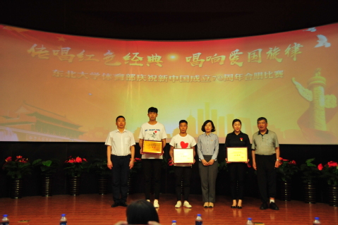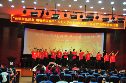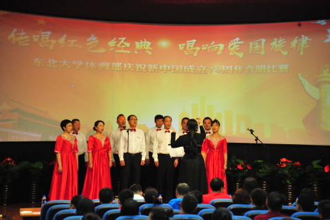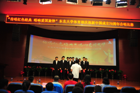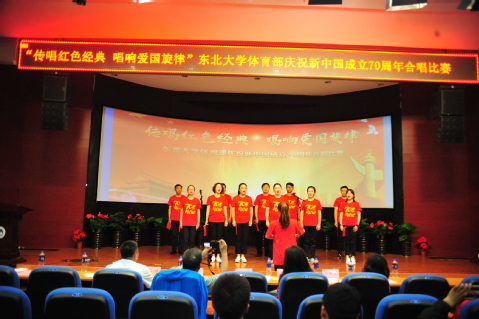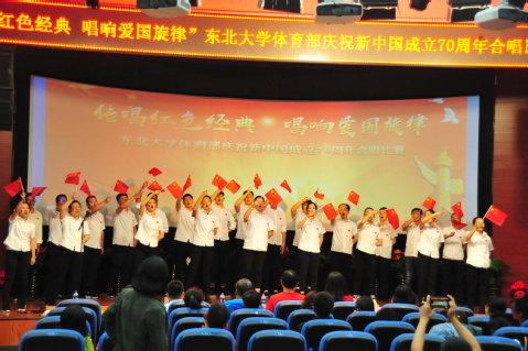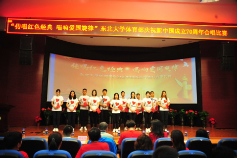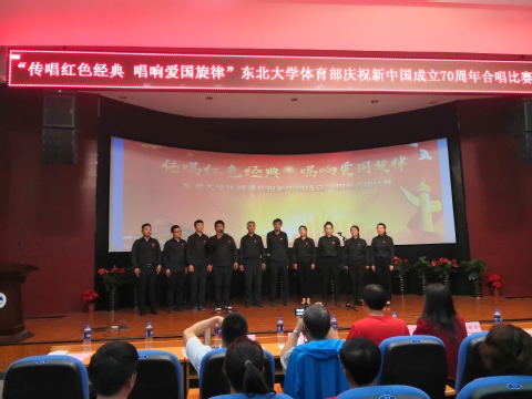 为深入学习贯彻习近平新时代中国特色社会主义思想和党的十九大精神,热情讴歌中华人民共和国成立70年来的光辉历程和伟大成就,大力弘扬以爱国主义为核心的伟大民族精神,积极营造隆重的庆祝氛围,9月25日下午,体育部在科学馆建龙学术报告厅举办“传唱红色经典,唱响爱国旋律”庆祝新中国成立70周年合唱比赛。东北大学工会主席沙海影、新闻中心广播电视室主任刘颖慧、艺术学院团委书记娄洹博、体育部离退休教师姜庆祥出席活动并担任评委,体育部、体育场馆管理中心领导及全体师生参加活动。