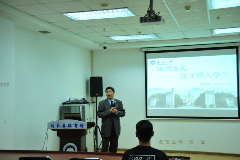 诸善顺为青马学员作题为“知书达礼,做文明大学生”的专题讲座。他从“基础文明你我他”、“知书达礼伴我行”、“价值引领圆我梦”三个方面进行详细地阐述,呼吁青马学员们遵守公共道德,以文明礼仪为基础,以知书达礼为前提,在社会主义核心价值观的引领下,展现朝气蓬勃、文明儒雅的当代大学生新形象!