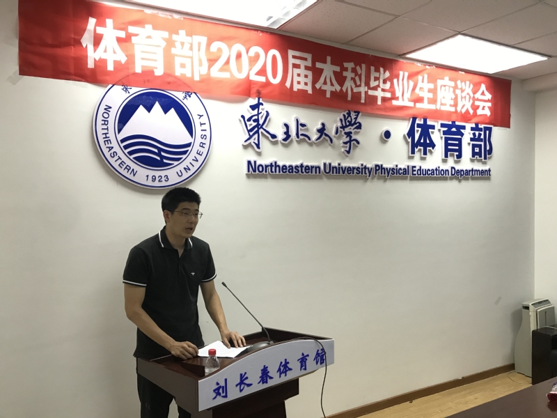 2020届毕业生代表贾长军代表全体毕业生向体育部致以真诚的谢意,感谢各位老师的谆谆教诲,感恩东北大学的滋养栽培;离别之际,他鼓励同学们秉持东大体育精神继续奋进,以优异的成绩向母校报喜!