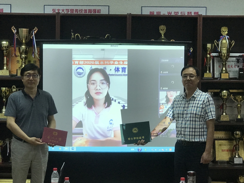 座谈会以毕业视频《归来仍少年》拉开帷幕,回顾了2020届毕业生的大学生活点滴。体育部主任陈松和党总支书记王明波通过云端和现场形式为毕业生颁发学位证、毕业证并合影留念。王明波宣读关于表彰体育部2020届本科毕业生贾长军等九名同学的决定,并于云端授奖。