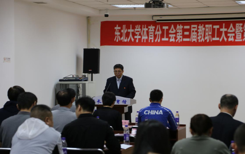 9月23日 下午2:00,东北大学体育部第三届教职工大会第一次会议暨工会第三次会员大会在刘长春体育馆会议室召开,校工会副主席张琦、外国语学院党委书记赵彩清、校教代会执委信息科学与工程学院工会主席肖军、理学院工会主席张建锋、后勤工会主席朴羽出席会议。会议由副主任诸善顺主持。