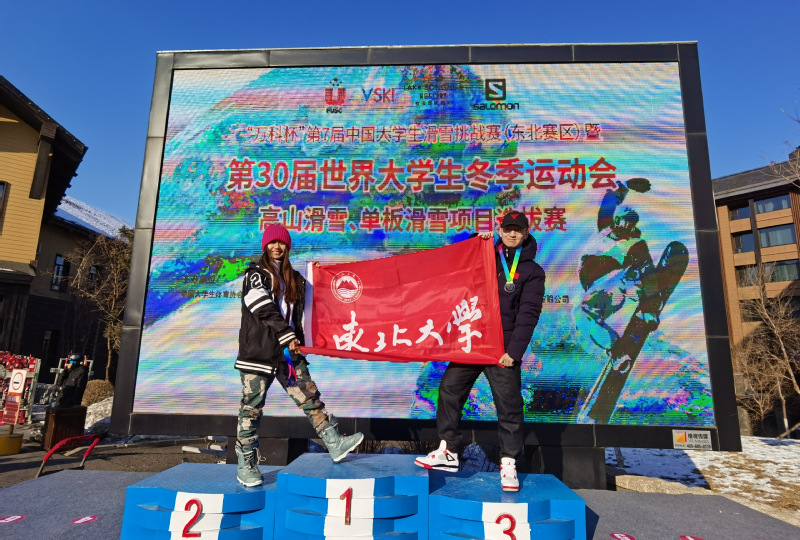 12月22日,由中国大学生体育协会主办的第七届中国大学生滑雪挑战赛暨第30届世界大学生冬季运动会高山滑雪、单板滑雪项目选拔赛在吉林松花湖滑雪场落幕,共有来自全国20所高校的近200名运动员参赛。东北大学体育部两名学生荣获两个单项冠军。