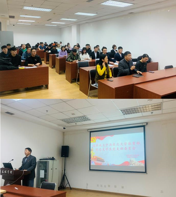 12月22日中午12:30,体育部学生党支部于刘长春北109会议室组织召开党员大会。体育部副主任兼党总支副书记诸善顺,党总支组织员陈昊,贾新溪老师出席,学生党员37人参加。