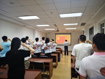 会议伊始,诸善顺带领全体参会党员重温入党誓词,毕业生党员们再一次庄严举起右手,重温当年的决心和信念,字字铿锵。