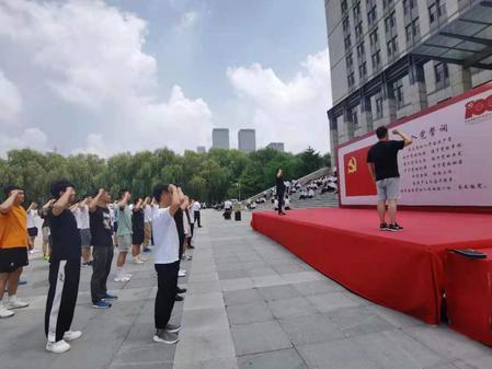 在本次党日活动中,全体党员首先在综合楼北广场进行了宣誓活动,通过重温入党誓词的方式回忆入党初心。