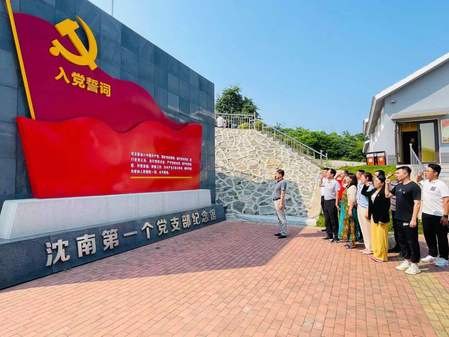 体育部党总支书记王明波同志带领党员同志进行“重温入党誓词”环节,体现的是党员同志对初心使命的在宣誓,是面向未来的再出发。 在参观过程中,大家认真听取了志愿者对沈南第一党支部的建立、历史以及发展的讲解,重温了党的革命艰辛之路,让历史印记再一次深深烙印在每名党员心中。在政治生活体验馆中,两个支部共同召开了简短的组织生活会,对近期的思想、工作以及组织生活进行总结。