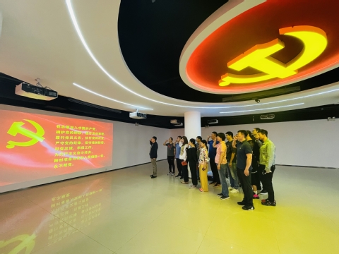 在工作人员的引导下,党员同志们参观了沈阳广播电视台环廊历史展示,深入了解了沈阳电视的过去、今天和未来。随后大家参观了演播室,亲临电视制作系统的心脏,感受当今主流电视机构的专业性和先进性。最后全体党员来到党史展示演播室,面对鲜红的中国共产党党旗,举起右手,庄严的重温入党誓词,铿锵的誓言坚韧有力,大家更加深刻地认识到自身的责任与使命。
