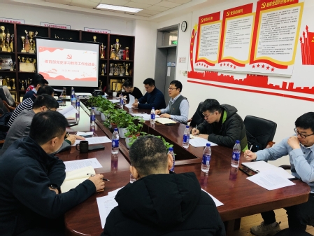 12月8日,体育部在刘长春体育馆南109室召开党史学习教育工作推进会,体育部领导班子成员、党总支委员、各党支部书记参加会议。会议由党总支书记王明波主持。
