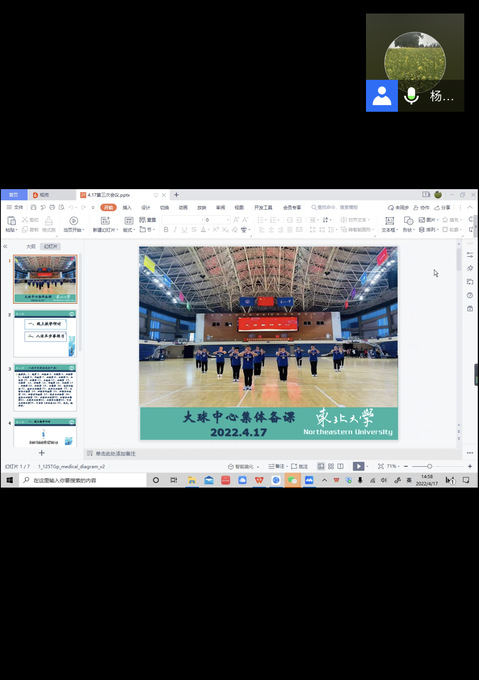 为积极做好本学期线上公共体育课教学工作,保证预期教学目标顺利完成,4月17日下午,大球教研中心通过腾讯会议举行线上集体备课,主要围绕八法五步拳练习和线上授课经验交流两部分内容展开,大球教研中心教师参加。会议由教研中心主任杨春卉副教授主持。