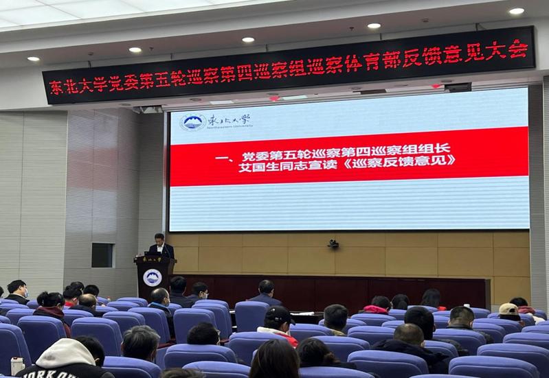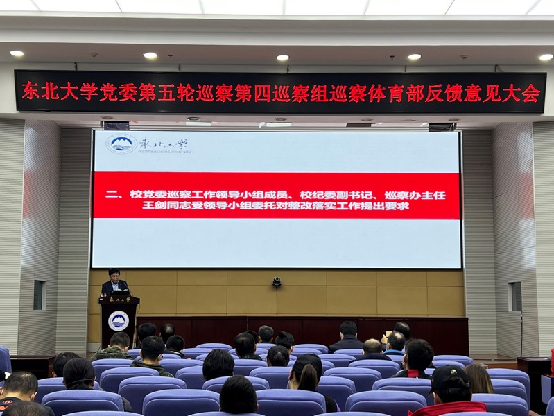 11月2日下午,东北大学党委第五轮巡察第四巡察组巡察体育部反馈意见大会在综合楼822会议室召开,校党委巡察工作领导小组成员、校纪委副书记、党委巡察工作办公室主任王剑,党委第五轮巡察第四巡察组组长、资源与土木工程学院党委书记艾国生同志及第四巡察组全体成员,党委巡察工作办公室全体人员、党委组织部相关人员出席会议。体育部领导班子成员、全体教职工及学生代表80余人参加会议,会议由体育部主任陈松主持。