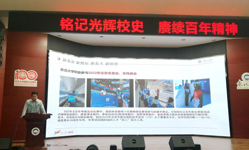 活动中,孙玉宁做《东北大学的奥运情缘》主题讲座,介绍了体育部的“老学长”刘长春首次作为中国唯一的运动员参加奥运会的事迹,讲述了东北大学与2008北京奥运会和2022北京冬奥会、冬残奥会的奥运情缘,激励同学们要心怀感恩、努力前行。