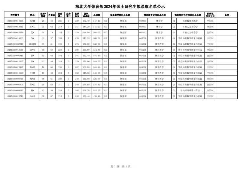 目前,体育部2024年硕士研究生招生考试一志愿复试工作已基本结束,现将拟录取名单进行公示,公示期为10天。